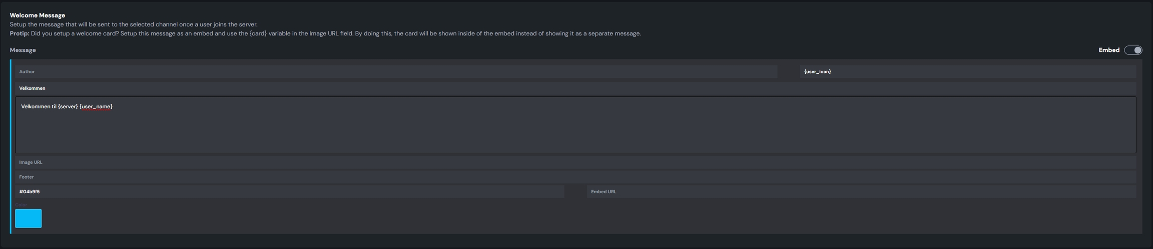 Du kan bruke disse Modulene for Velkommen systemet {user_icon} {server} {user_name}
